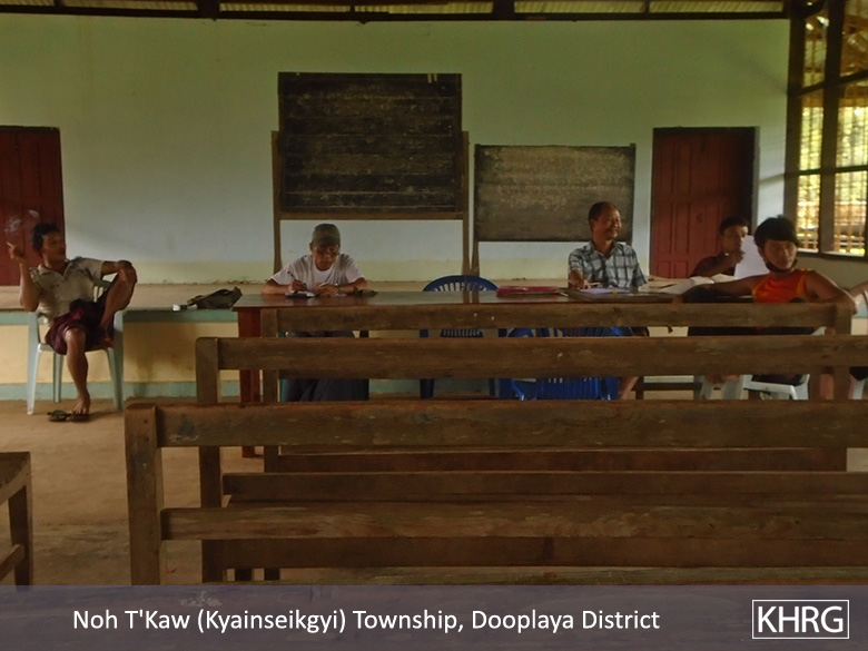 This situation update describes events that occurred in Noh T’Kaw [Kyainseikgyi] and Kaw T’Ree [Kawkareik] townships, Dooplaya District including healthcare, education, development, livelihoods, land issues and military activities.