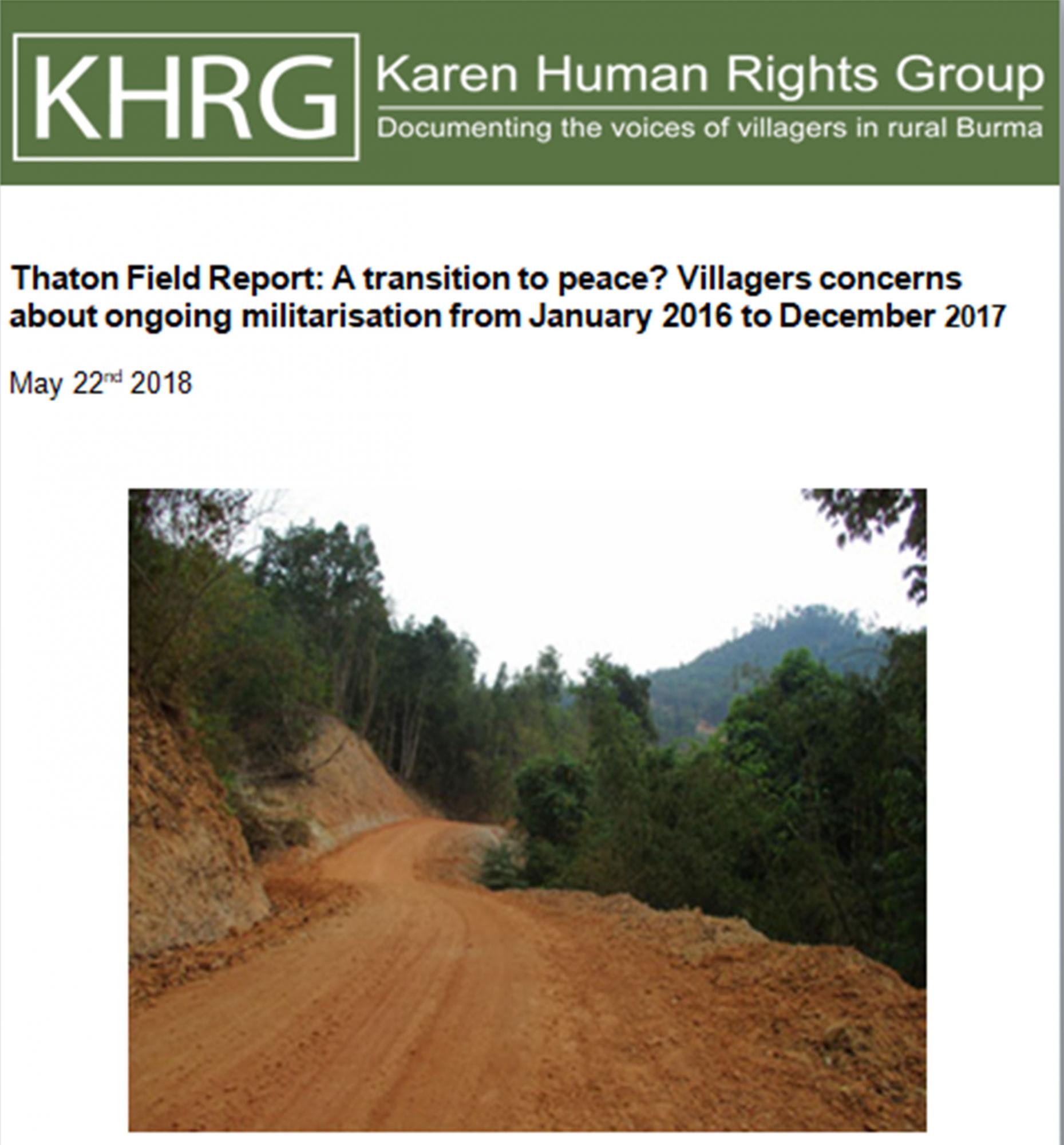 This Field Report describes events occurring in Thaton District, southeast Myanmar between January 2016 and December 2017. It includes information submitted by KHRG community members on a range of human rights violations and other issues important to the local community including the military situation in the post-ceasefire period, development projects, drug usage, ethnic and religious discrimination, and violence because of conflicts about land use.