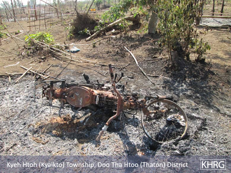 [45] These photos are taken from previous published KHRG news bulletin, “Trespassing villagers’ houses destroyed and burnt down in Kyaikto Township, Thaton District, February 2016”, KHRG, July 2016.