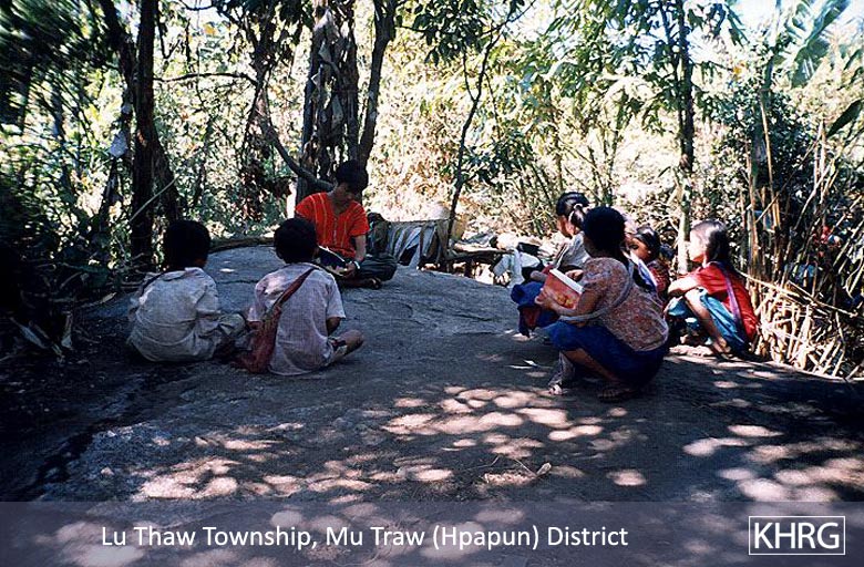 According to KHRG reports, forced assimilation policies implemented by the Myanmar government has resulted in many KNU administered schools being forcibly closed or destroyed and Karen language, literature, and traditions were banned from classrooms, particularly prior to the 2012 ceasefire. During this time, villagers struggled to keep schools open unless they hired Myanmar government-sanctioned teachers as officers were suspicious of any service which was not directly controlled by the Tatmadaw. Throughout southeast Myanmar, many villages used to have primary schools supported by the KNU or schools they set up and ran entirely by themselves, but these were systematically forced to shut down by the Tatmadaw. In order to open their schools, villages were required to obtain the regime’s approval to run a school, to pay all the costs and salary of a Myanmar government-trained teacher, and to teach the official Myanmar government curriculum.[60] According to one villager from Hpa-an District: