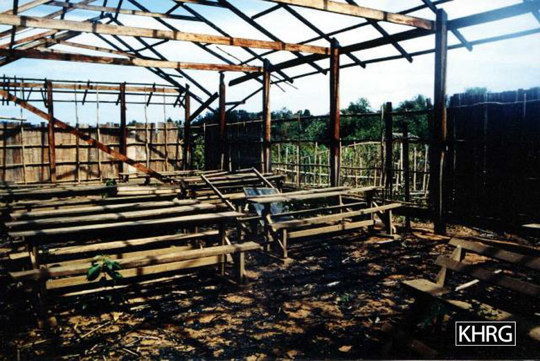 In addition to the targeted looting and destruction of Karen educational facilities, villagers were also blocked from building new schools[15] or did not do so out of fear that building new schools in their villages would increase the likelihood that they would be targeted by armed actors. For example, villagers in the Meh Kreh area of Hpa-an District in 1998 had their villages burned down, but feared that building new schools would attract a second Tatmadaw attack. The attacking of school buildings by Tatmadaw was perceived by villagers to have direct intention of repressing their ethnic culture. In the experience of villagers in the Meh Kreh area, the Tatmadaw suspected the teachers in these schools of being trained in a KNU school and, by association, as being in support of a Karen ethnic armed group. As a result of the government and Tatmadaw suspicion that KNU schools promoted ethnic insurgency, the children in these areas had no access even to primary school.[16] Furthermore, movement restrictions and the danger of landmines or capture and abuse by Tatmadaw soldiers operating under a shoot-on-sight policy made it impossible for both teachers and children to travel to schools in other villages or towns.[17]