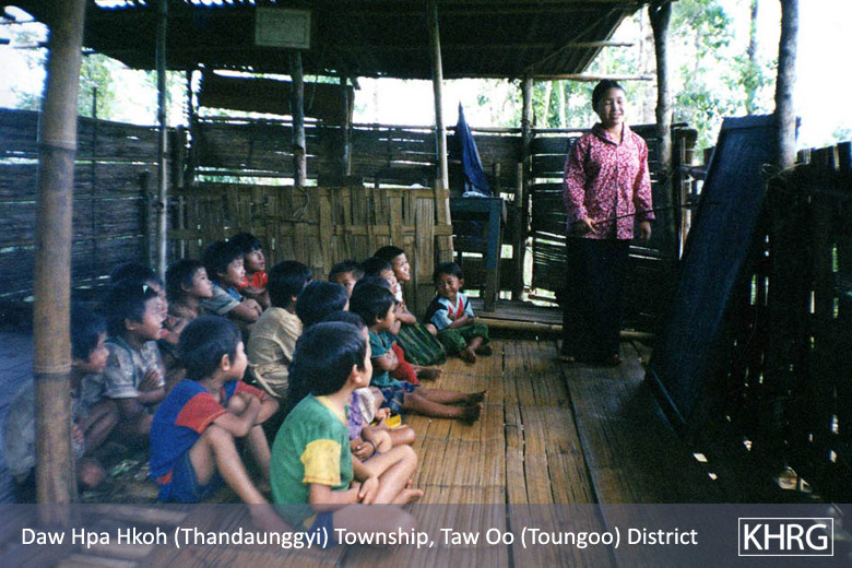 [57] “Insomevillages, somepeoplesaidthatBurmesefemale teachersbrutallybeat thechildren[students]if theycouldnotfollow thelessons.” Dooplaya Situation Update: Win Yay Township, June to July 2015,” KHRG, March 2017.