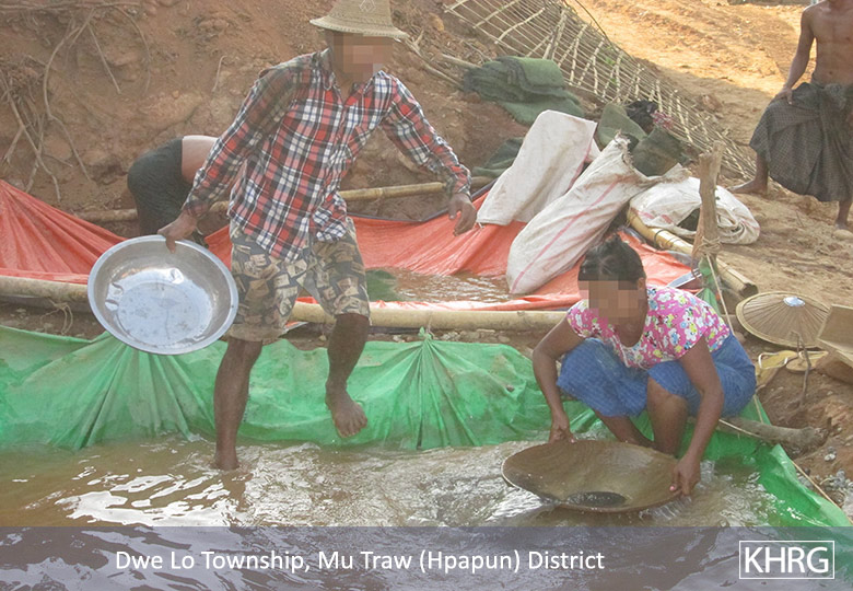 Gold mining was conducted from July 3rd 2017 onwards in D--- village, Waw Mu village tract and E--- village, Meh Choke village tract, Dwe Lo Township, Hpapun District.