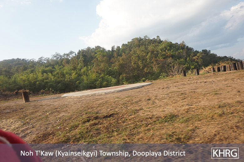 The Tatmadaw units that are based on the Thai-Myanmar border have strengthened their army camps. They also built a helicopter landing pad. Local people reported that the Tatmadaw built helicopter landing pads in their army camp on the hill next to Ka Lee Hkee village and Kyaw Hta [A’zin] village in Kyainseikgyi Township. The Tatmadaw also built helicopter landing pads in other military camps, including Yay Th’Law camp, Th’waw Thaw camp, Hsoh K’Lee camp, Maw Tuh camp, Aoo Kray Hta camp, Htee Ther Leh camp, Ghaw Lay camp, Maw Hkee camp and Htee K’pler camp. These camps are located in Kawkareik Township.