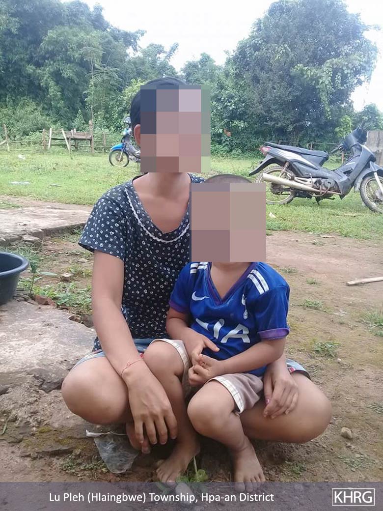 The mother and child in the picture above had to flee to H--- village because the Tatmadaw dug trenches underneath their raised wooden house. [Photo: KHRG]