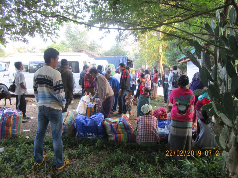 This photo was taken on February 22nd 2019 in Nu Poe refugee camp, on the Thai-Myanmar border. Refugees are preparing their belongings and waiting for transportation to return to Myanmar. [Photo: KHRG]