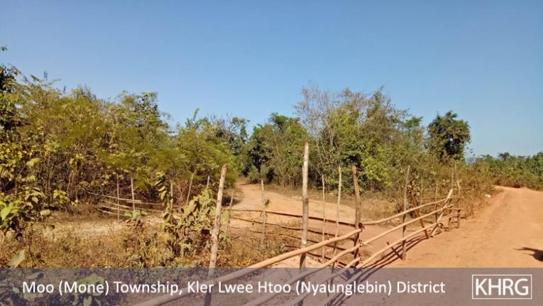 Since 2017, logging and gold mining activities conducted by local KNU leaders and businessmen have had serious impacts on the livelihood of the local population in Mone (Moo) and Shwegyin (Hsaw Htee) townships. In T---village, Shwegyin Township, land confiscation by the Tatmadaw has resulted in the forced relocation of 48 households in 2002, and the affected villagers are now at risk of losing their lands again. In K---village, Mone Township, local civilians fear that fighting might resume because the Tatmadaw is confiscating lands and sending more patrols to the area. Landmine contamination remains a problem in Tha Pyay Nyunt village tract, Mone Township, where two local villagers sustained injuries after a landmine exploded in December 2018. [1]