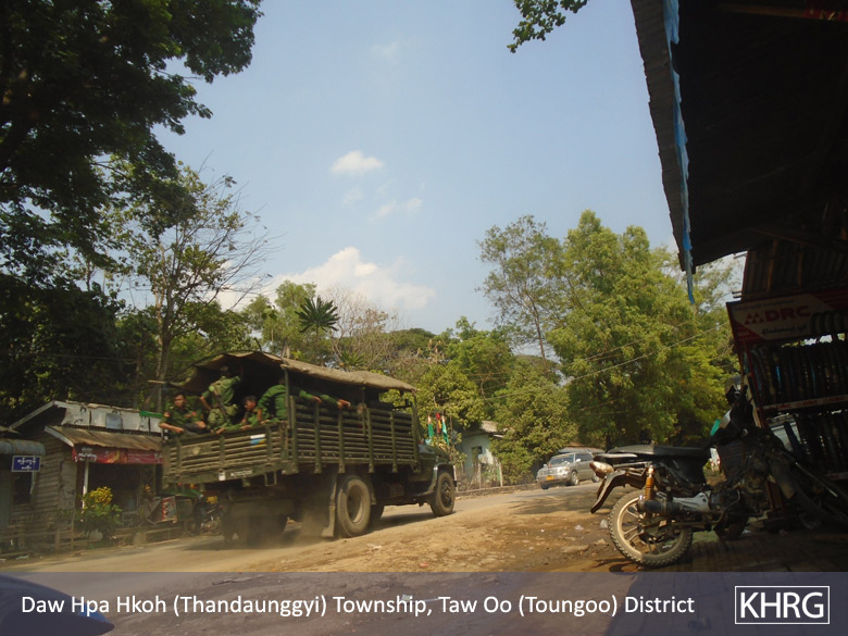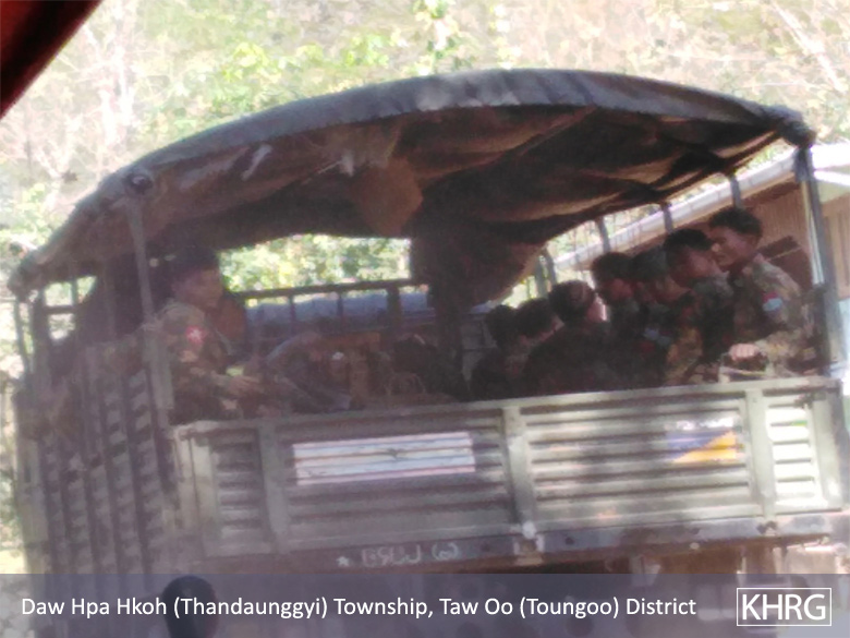 There has been an increased Tatmadaw presence in Thandaunggyi and Htantabin Townships. Civilians reported that the Tatmadaw is reconstructing and reinforcing their army camps and roads, rotating troops, and supplying rations, weapons and ammunition to said camps.[3]