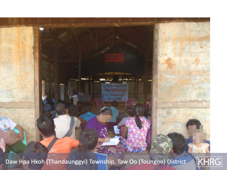This Situation Update describes events that occurred in Htantabin (Htaw Ta Thoo) and Thandaunggyi (Daw Hpa Kho) townships in Toungoo District between December 2018 and May 2019. These include an increase in militarisation by the Tatmadaw, [1] Tatmadaw military training and live fire exercises, land confiscations by several actors, livelihood difficulties due to loss of lands, the proposed Thauk Yay Khat Dam (1), and challenges in accessing healthcare and education. [2]