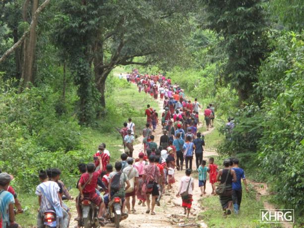 The villagers from A---, Kheh Der village tract had to flee from their village [in the past] because of the tensions [fighting]. They returned to their village in 2014 after the local security situation improved. In February 2019, the Tatmadaw started building a road near the village. As a result, 108 villagers had to displace again [and relocate in a nearby forest].