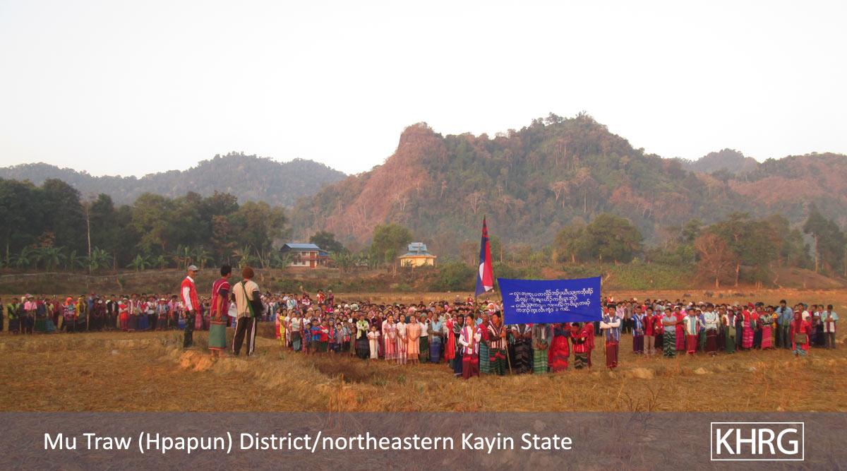 On January 15th 2020, villagers from Mu Traw district held several demonstrations against the Tatmadaw road construction activities in the area. The protests took place in A---, B---, C--- and D--- [Bu Tho Township]; E--- and F--- [Dwe Lo Township]; as well as in Lu Thaw Township.