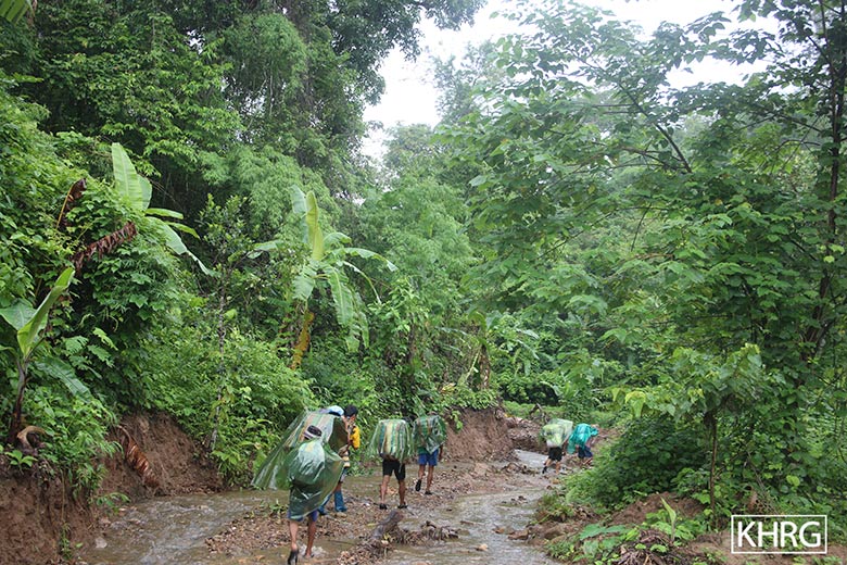 These photos were taken in Ei Tu Hta IDP camp and on a small path just outside of Ei Tu Hta IDP camp, Bu Tho Township, Mu Traw (Hpapun) District on June 15th 2017. The photos show IDP families who decided to return on their own to Ma Yah Hpin return site, Moo (Mone) Township, Kler Lwee Htoo (Nyaunglebin) District.