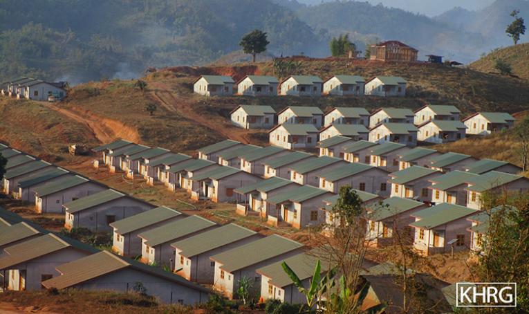 This photo is from a video taken of Kaw Lah village, Kaw T’Ree (Kawkareik) Township, Dooplaya District on February 6th 2020. Kaw Lah village is one of several designated repatriation/resettlement sites for returnees. Pictured is the Three Hundred Houses area where new housing was built for refugee and IDP returnees. [Photo: KHRG]