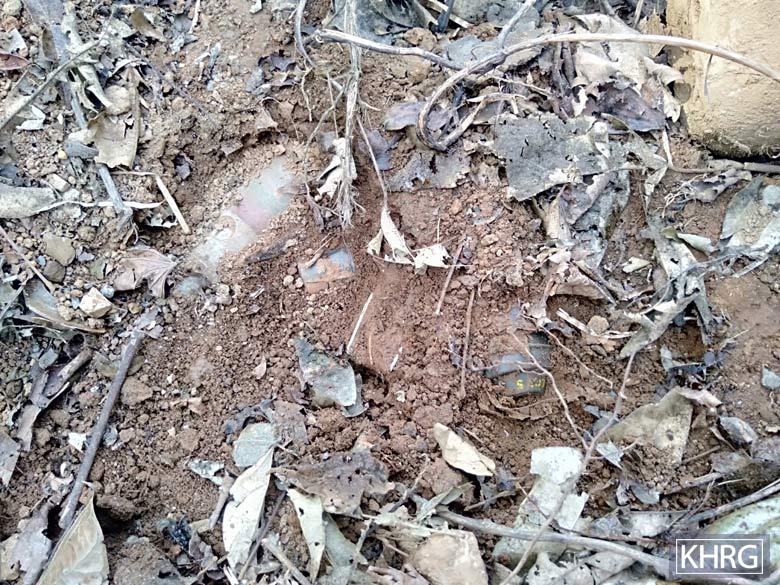 These photos were taken on January 4th 2021 in O--- village, Meh Klaw village tract, Bu Tho Township, Mu Traw District. They show some of the pieces of unexploded ordnance the Tatmadaw Maintenance Unit #642 left behind after destroying old ordnance on land belonging to a local villager. [Photos: KHRG]