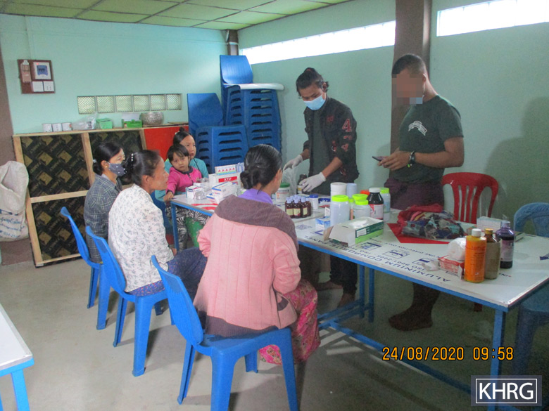 This photo was taken on August 20th 2020 in Ac--- village, Mine Lone village tract, Daw Hpa Hkoh Township, Taw Oo District. Staff from Free Burma Rangers (FBR) came to provide medical services to the villagers. Since the outbreak of the Covid-19 pandemic, Myanmar government health workers have stopped coming to provide healthcare services in the village. Therefore, local villagers have welcomed the community mobilisation healthcare group and were grateful to receive treatment from them. [Photo: KHRG]