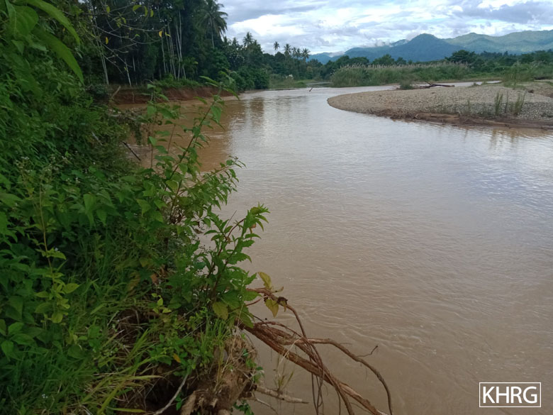 These photos were taken on October 17th 2020 in D---village, T--- village tract, Moo Township, Kler Lwee Htoo District. This segment of the Traw Lo Kloh [River] has turned brown because of the pollution generated by the gold mining activities. [Photo: KHRG]
