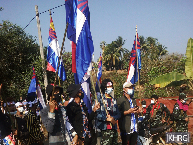 Protests also occurred in K’Moh Thway area in Leh Doh Soh Township, Way Ta Eh and Paw Hkloh areas in K’Ser Doh Township, and P’law area in Leh Muh Lah Township.[28] However, on February 21st, Mergui-Tavoy District KNU leaders met with local KNU leaders in Kleh Muh Htee area, K’Ser Doh Township and advised Karen individuals not to join the protests, leading many to refuse to join the protests when asked to do so by protest organisers in their village. However, some civilians did still continue to join in the protests.[29]
