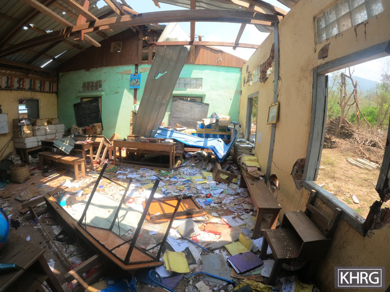 On March 29th 2021, at around 1:00 pm, two SAC jets dropped five bombs on the KECD No. 3 Daw Koo Hta High School in Ler Htoo Poe village, Mae Thu village tract, Dwe Lo Township, Mu Traw District. Five children were injured in the bombing, and two of them sustained serious injuries. The school was completely destroyed.[47]