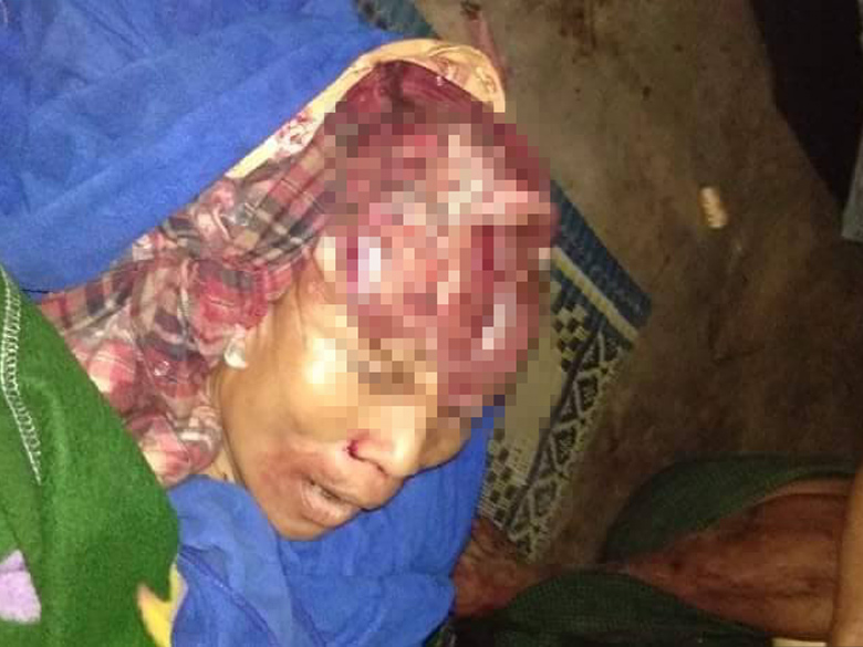 These photos were taken on March 19th 2022 in W--- village, T’Maw Daw village tract, Tha Htoo Township, Doo Tha Htoo District. These photos show two of the villagers injured by SAC mortar shelling. [Photos: Local villager]