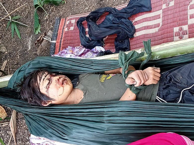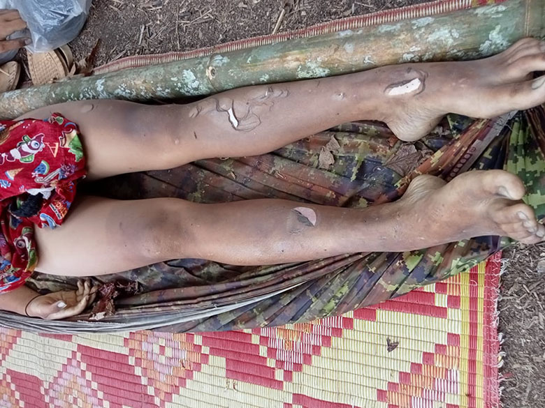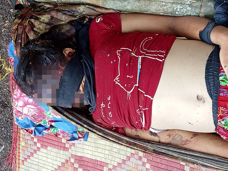 These photos were taken on April 25th 2022 in Lay Hpoh village, Kwee K’Saw Kyee village tract, Waw Ray Township, Dooplaya District. The photos show the corpse of 12-year-old Naw S--- after it was found. [Photos: Local villager]