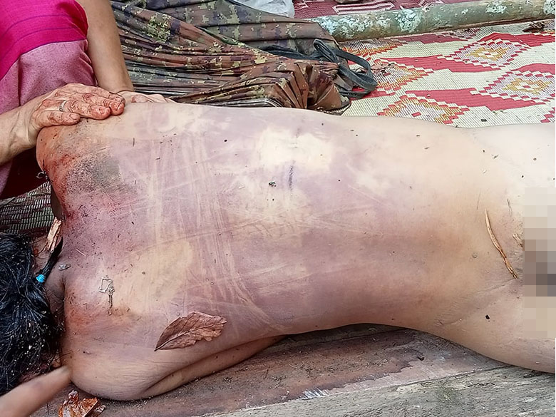 The two girls were found dead, with extensive wounds and bruises all over their bodies. Their hands and feet were bound. A community member who saw the corpses explained: “When they were found, they were lying on the ground. Their hands were bound and a piece of cloth was tied around their eyes. But their clothes were on them. […] They had injury marks on their bodies. Naw S---’s head was smashed flat from her ear to her eye on the left side. […] She had injuries on her back like she was dragged on the ground. Naw R--- also had injuries on the left side of her head. Both of her legs seemed to be broken as they were all twisted. There were bruises all over their [both girls’] body and groin. Both of them had their anus torn.” Local authorities also found some semen in the female organs [vagina] of both victims. The local authorities who examined the bodies were the village security officers, the village head, the KNPF, the KNLA and health workers from Karen Department of Health and Welfare (KDHW) and Burma Medical Association (BMA). The local authorities and villagers believe that the victims were raped, tortured and killed.