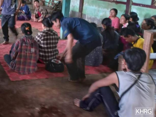 This photo was taken on September 22nd 2022 in G--- village, Ta Wah Law Chin village tract, Daw Hpa Hkoh Township, Taw Oo District. It shows the displaced villagers from Mine Lon village tract receiving financial support from KORD. [Photo: KHRG]