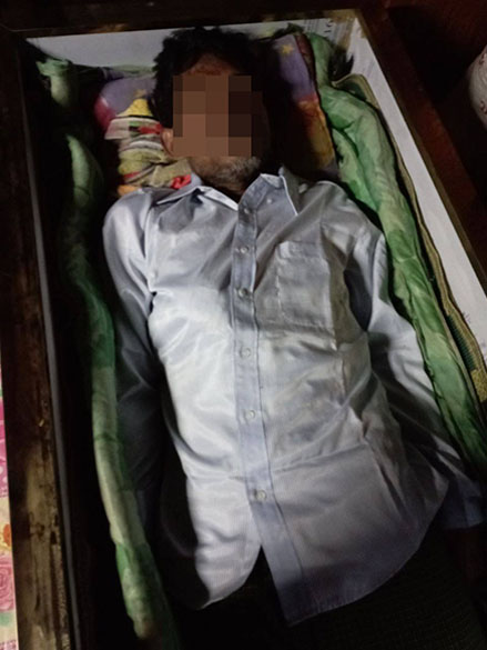 KHRG received this photo on August 31st 2023. This photo shows the villager U K--, 40 years old, who was killed by the indiscriminate shelling of SAC LIB #285 on July 25th 2023, that took place in B--- village, P’Law area, Ler Muh Lah Township, Mergui-Tavoy District. [Photo: Local villager]