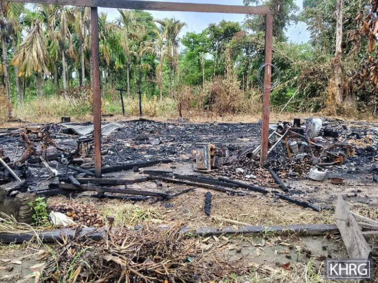 Once the villagers had been released by the SAC, at around 9:30 am, fighting happened again between the SAC and combined forces of PDF/KTLA close to B--- place. After they fought for about 30 minutes, KTLA and PDF soldiers retreated from the fighting place. C--- [plantation owner] was hiding somewhere nearby during the fighting. As he explained to a KHRG researcher, the SAC soldiers burned his house down after the fighting in retaliation because they thought he helped the KTLA/PDF soldiers. The estimated value of property damage of C---’s house is 30 million kyat [14,296 USD][8].