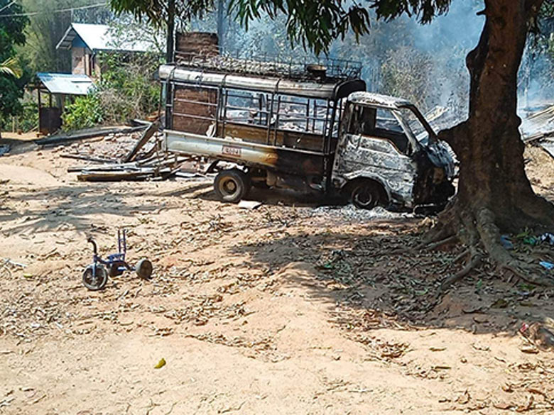Fighting broke out between the Burma Army and Thandaung PDF on February 21st 2023, at 10:30 am. No soldiers from either group were injured in the skirmish. After the fighting, the Burma Army came into Section #1 of Thandaung Town (Section #1 was previously called Section #5), which was close to the incident place, and burned down seven houses, two motorcycles and a car belonging to civilians. As the fighting happened in a residential place, civilians had fled to other secure places.