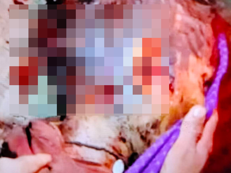 A KHRG researcher received this photo on December 12th 2023 from a local villager, Naw G---, who lives in A--- village, Daw Hpa Hkoh Township, Taw Oo District. This photo shows the body of a 12-year-old child, Saw B---, killed by an SAC air strike in A--- village on September 12th 2023. [Photo: local villager]