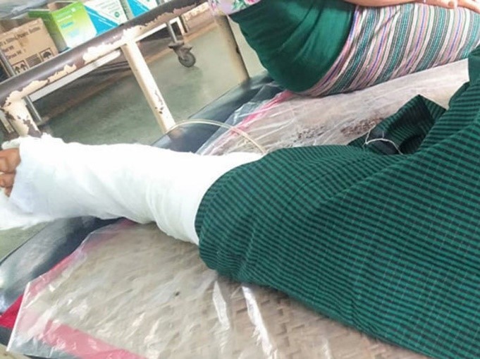These photos show two villagers, W--- (32 years old) and X--- (55 years old) from Y--- village, Aur Naung Pat Kan village tract, Dwe Lo Township, being treated for injuries sustained after stepping on landmines near their village. On June 20th 2021, W--- stepped on a landmine while he was returning home from his hill fields. In a separate incident, on June 22nd 2021, X--- stepped on a landmine while she was harvesting mushrooms outside of her village. The photos above show X--- receiving treatment on June 24th 2021 in Mawlamyine Public Hospital. The photos below show W--- receiving treatment on June 20th 2021 in Hpa-an Public Hospital. In the case of both victims, their right legs had to be amputated because of their severe injuries. Villagers do not know which armed groups planted these two landmines.[22] [Photos: Local villager]