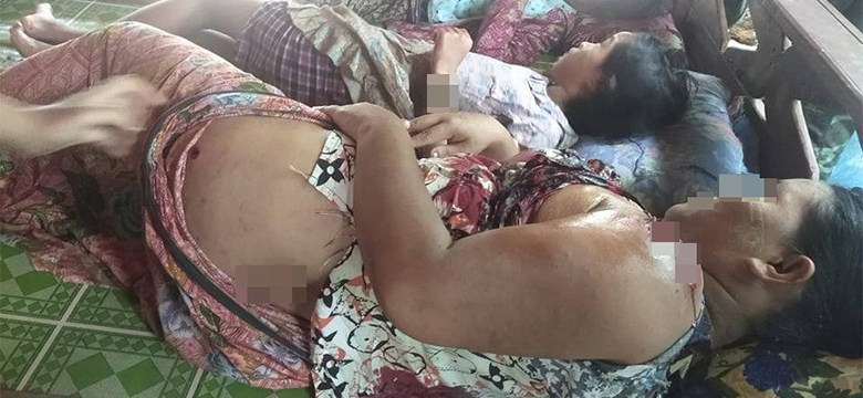 This photo was taken on June 24th 2023 in Ab--- village, Thet Keh Kon village tract, Hsaw Htee Township, Kler Lwee Htoo District. On that day, at 9:32 am, SAC LIB #20 based in Inn Waing army camp, Inn Waing village tract, shelled two 60mm mortar rounds in Ab--- village and shrapnel injured three female villagers. Daw[18] Ac--- (75 years old) was injured when she was sleeping in her house by a piece of shrapnel that hit her lower back and belly. Ma Ad--- (44 years old) was injured on her left shoulder and her hip, and her daughter Ma Af--- (10 years old) was injured on her hip. According to local villagers, the SAC shelled mortar rounds in the village because they received information that the KNU was going to have a meeting with villagers there. [Photo: Local villager]