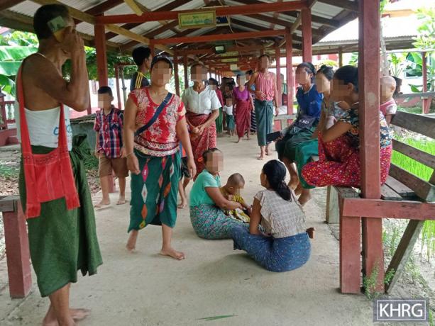 This photo was taken on July 12th 2023 in Ag--- village, Myaung Yo Kyi village tract, Moo Township, Kler Lwee Htoo District. It shows villagers from Ah-- and Aj--- villages who had to flee from their villages because SAC IB #5 entered their village and conducted indiscriminate shelling on that day. [Photo: KHRG]