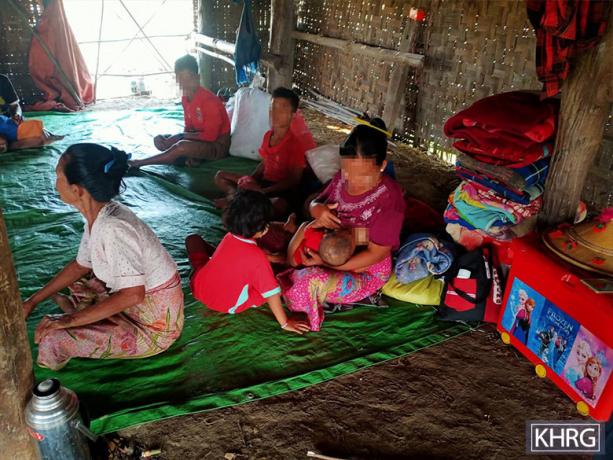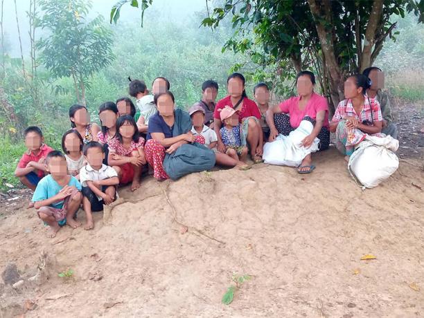 This photo was taken on February 27th 2023, in Kk--- area, Moo Township, Kler Lwee Htoo District. This photo shows Ll--- villagers who had to flee because of SAC indiscriminate shelling in villages in Kk--- area on February 24th 2023. [Photo: KHRG]