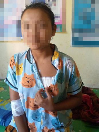 This photo was taken on November 20th 2023, in H--- village, Shwe Laung Aye village tract, Bilin Township, Doo Tha Htoo District. This photo shows an injured villager named Naw I--- (17 years old) accessing medical treatment at H--- clinic. She was injured by SAC Light Infantry Battalion (LIB) #404 shelling of several 60mm mortar rounds around their army base in H--- village area, on November 20th 2023. These attacks also injured another villager, and damaged villagers’ houses and properties. SAC LIB #404 is under Military Operation Command (MOC)[7] #8. [Photo: Local villager]