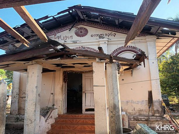After the police station was captured [by the KNLA], at about 9 pm, SAC Light Infantry Battalion (LIB)[9] #545, under Military Operations Command (MOC)[10] #12, based near Kaw T’Ree Town, fired mortars into C--- village, Raw Keh village tract, Kruh Tuh Township [located approximately half an hour away by motorbike]. In total, 10 rounds of mortar landed in and around C--- village. Four mortar rounds landed in the village, one mortar round landed outside a [nearby] monastery complex, and five mortar rounds landed in the monastery complex. The shell that landed at the entrance of the monastery damaged a nun’s dormitory and monastery building. Around 60 people from B--- village were seeking shelter in this monastery due to [the earlier] fighting. Among the displaced, there were [vulnerable] villagers [including someone] who had a stroke and [someone with] diabetes. Monks and villagers [from C--- village] supported and provided food and hygiene [products] to the displaced.