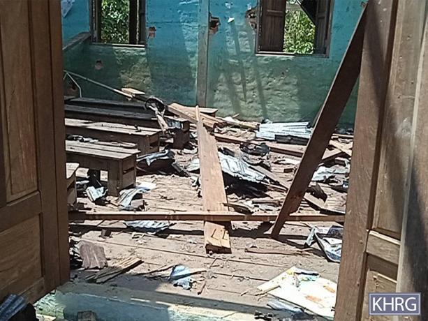 The air strike also destroyed five villagers’ houses, an elementary school located inside a church compound, an animist temple, one middle school located near a football ground, a rice barn, and one toilet in G--- village. |