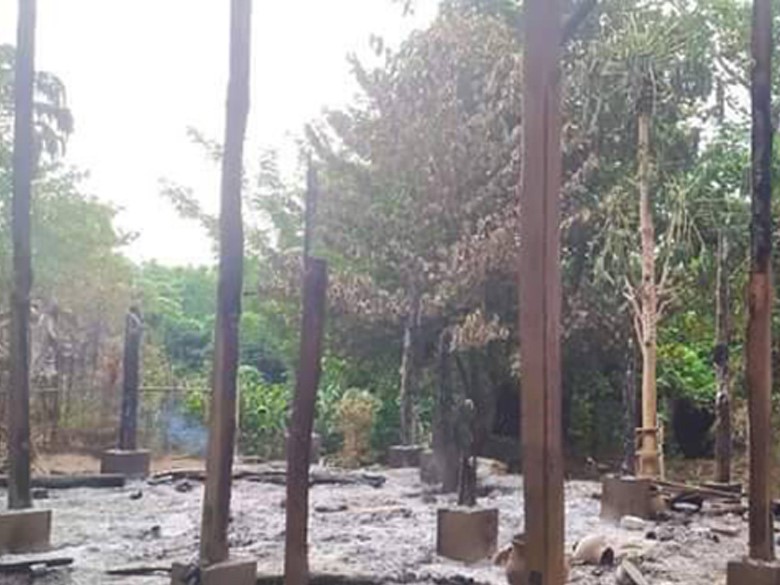 KHRG received these photos from a local villager in March 2024. The photos show some villagers’ houses that SAC troops burned down in A--- village, Htee Day village tract, Daw Hpah Hkoh Township, Taw Oo District, on November 12th 2023. [Photos: Local villager]