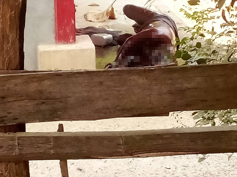 This photo was received in June 2024 from a local villager in A--- village, B--- village tract, Htaw Ta Htoo Township, Taw Oo District. It shows the dead body of U C---, a villager who was tortured and killed by SAC soldiers from IB #73 in A--- village, after a skirmish occurred near the village, on March 15th 2024 with armed resistance groups. [Photo: A local villager]