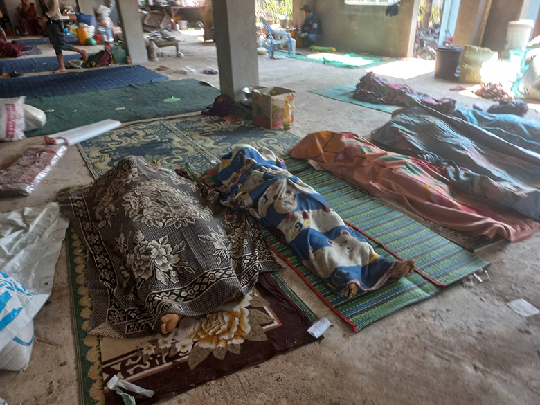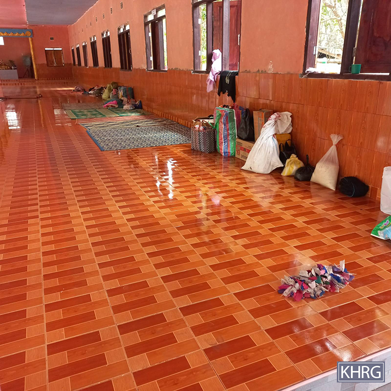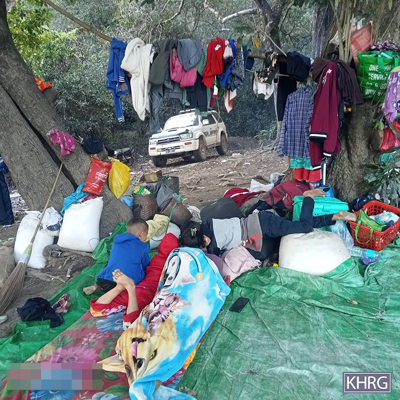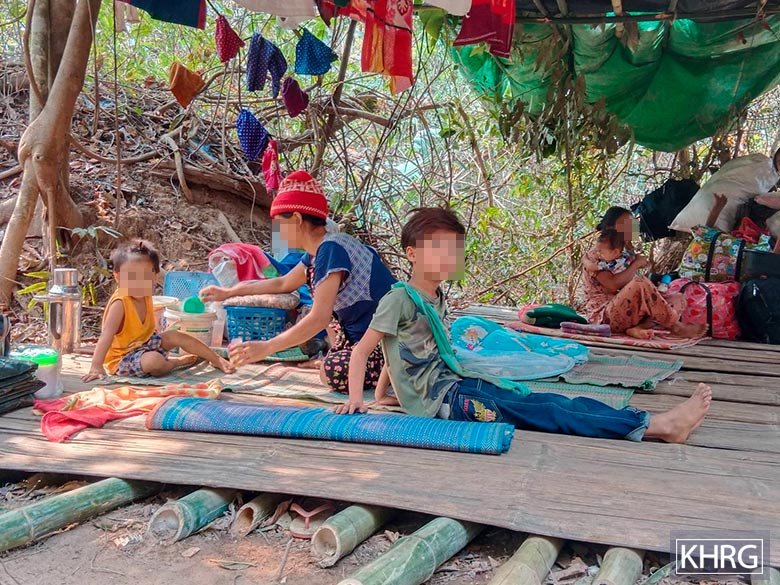 These photos were taken in January 2024, in Bv--- village, Kyaw Hta village tract, Kaw T’Ree Township, Dooplaya District. These photos show villagers from Bw--- village, Meh Naw Aa village tract, Kaw T’Ree Township, who sought shelter in By--- village due to fighting that occurred in Kyeh Done Town on January 26th 2024 between KNLA and SAC solders. [Photos: KHRG]