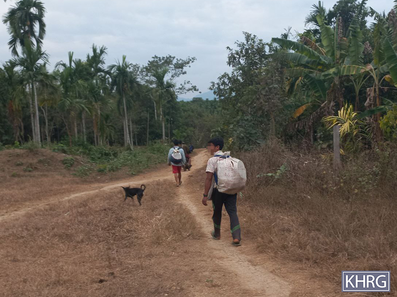 This photo was taken in January 2024, at Paw Klo big area, K’Ser Doh Township, Mergui-Tavoy District. On January 23rd 2024, KNLA Battalions #12 and #27 and PDF combined forces attacked the SAC army camp of IB #273, in Ar--- village, Paw Klo big area. Villagers fled to other villages and some fled to their plantations, as they feared and worried that shelling and air strikes would be conducted by the SAC into their village. As of February 2024, they returned to live in their village. [Photo: KHRG]
