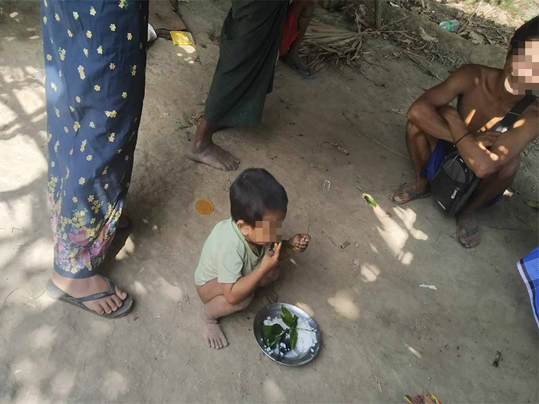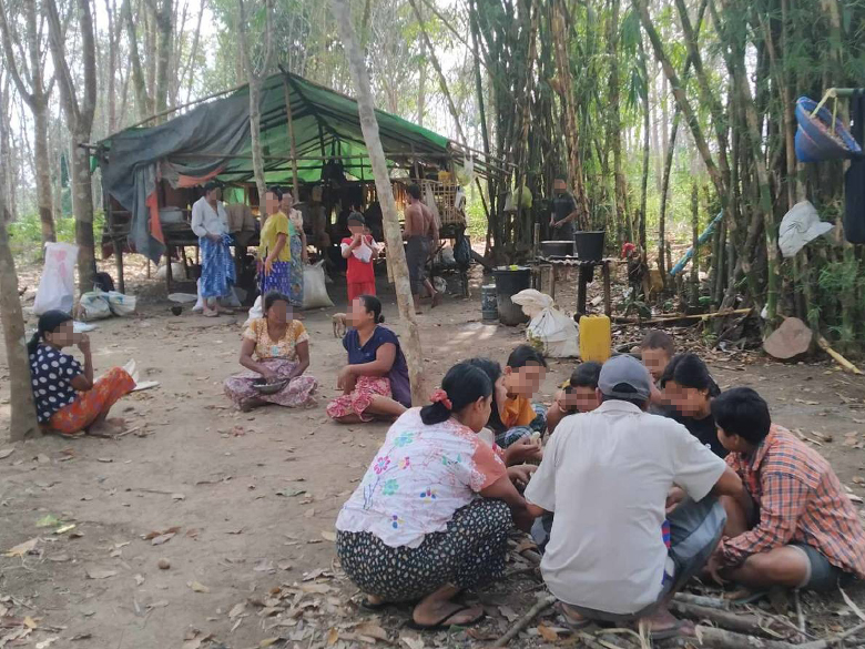 KHRG received these photos on August 17th 2024 from a villager from Ax--- village, T’Keh village tract, T’Naw Th’Ree Township, Mergui-Tavoy District. These photos show villagers who were displaced due to SAC air strikes conducted on August 15th 2024 into Ax--- village. Villagers from Ay---, Az---, and Ba--- villages, all in T’Keh village tract, also fled. Students had to stop going to school due to the air strikes. Roads from Bb--- village, in Kleh Mu Htee area, were closed by the SAC and villagers faced difficulties due to travel restrictions. There were elderly villagers and mothers who had recently given birth among the displaced, particularly in need of food and medicine for various ailments. [Photos: Local villager]