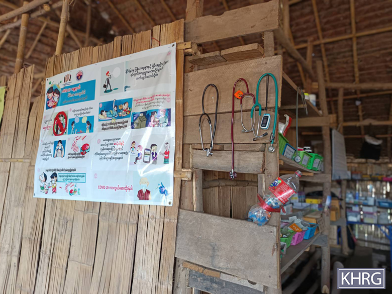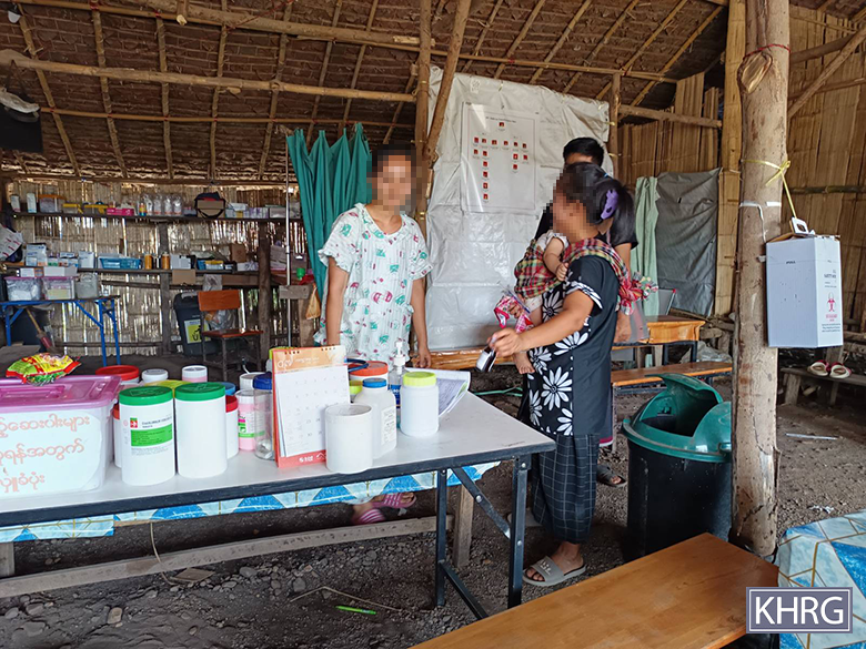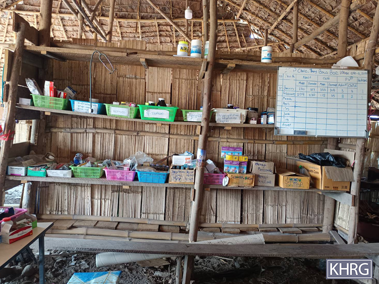 These pictures were taken in March 2024 and show an ‘emergency clinic’ in Zz--- displacement site, near By--- village, Thay Baw Boh village tract, Kaw T’Ree Township, Dooplaya District. The clinic was established in December 2021 by displaced villagers, after fighting broke out between SAC armed forces and armed resistance groups in Bz--- village, Lay Kay Kaw village tract, Kaw T’Ree Township. There are more than 100 households sheltering in By--- village’s displacement site, Zz----. The clinic provides free health care treatment with medical supplies provided by the Karen Department of Health and Welfare (KDHW)[18]. If the clinic cannot treat the patients, villagers are referred to Ca--- hospital, located in Thailand’s Tak province. [Photos: KHRG]