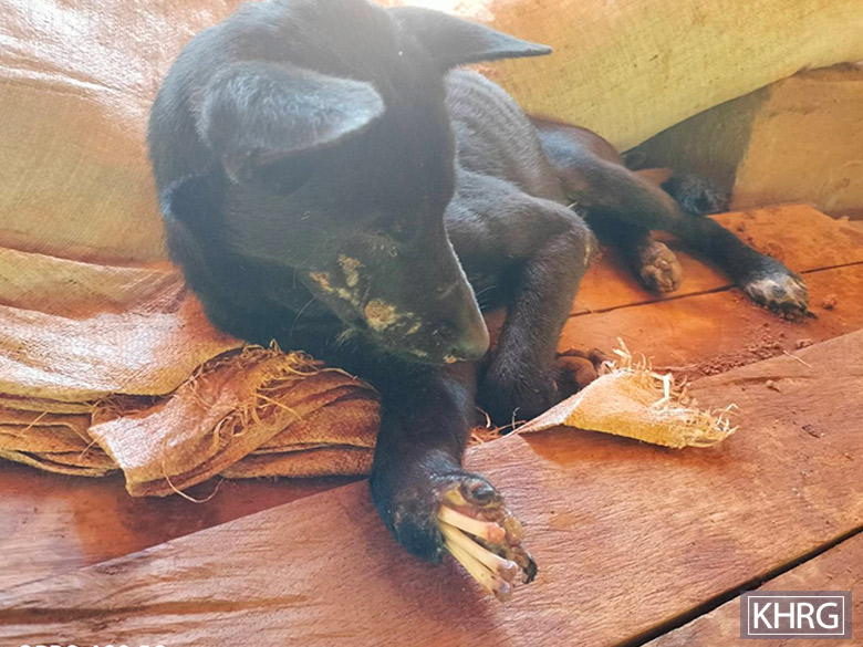 The mortar shell that landed in the village exploded in front of the house of Saw D---. The mortar shell damaged the house and household materials, such as a big plastic bottle containing rice [which weighted 10 viss[6]], cooking pots, and the house’s zinc roof, wooden floor, ladder, and bamboo wall. A betel nut tree, a mango tree, and a papaya tree owned by Saw D---, as well as a motorbike owned by his son [Saw K---], were damaged. The shrapnel also hit and injured Saw D---’s dog, on the leg.