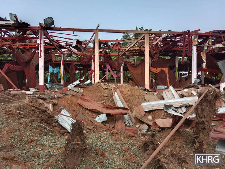 At 12:05 pm, the SAC fighter jet dropped three more bombs. One of the bombs landed outside of Ak--- village, Noh Ber Baw village tract. It is unknown where the other two bombs landed. At 12:30 pm, three more bombs were dropped from the fighter jet. The bombs landed outside of Al--- village, Noh Ber Baw village tract. In addition, Oerlikon machine guns also fired many bullets from the fighter jet outside of Ak--- village. No one was injured as the air strike [and the Oerlikon machine gun firing] happened outside of the village, and villagers were celebrating the Karen New Year[9] inside the village.