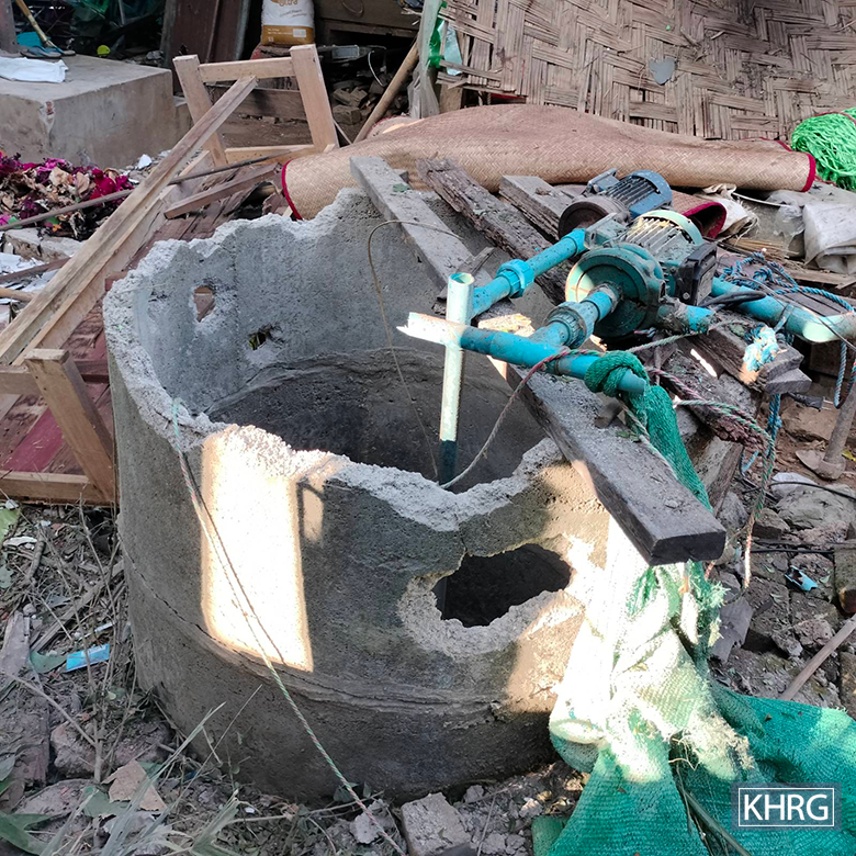 These photos were taken in December 2024 in Y--- village, P’Saw Loh village tract, Daw Hpah Hkoh Township, Taw Oo District. On December 12th 2024, despite the absence of fighting, SAC soldiers based in Set Chauk Maing (Yay Pu San) village shelled two mortar rounds into Y--- village. One of the mortar shell explosions destroyed three houses and all belongings inside. The photos show one of the houses, owned by U[16] Z---, destroyed along with all of his household’s possessions, such as an electric motor for a water pump, a water cooler machine, pots, chairs, clothes, and other items.[17] [Photos: KHRG]