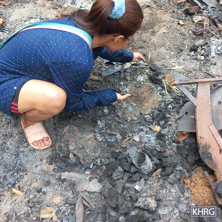 These four photos were taken in Aq--- village, Way Shah village tract, T’Nay Hsah Township, Hpa-an District. On March 17th 2024, SAC soldiers from IB #275 army camp fired two 120 mm mortar rounds into Aq--- village. The photos on the top right, top left and bottom left were taken on March 18th 2024 by local villagers. The photo on the top left shows a villagers’ house, burned down in a fire caused by an SAC mortar shell explosion. The photo on the top right shows a smartphone shop, and the photo on the bottom left shows a motorcycle workshop, both owned by local villagers and burned down by SAC indiscriminate shelling. The photo on the bottom right was taken in May 2024 and it shows properties of Saw Ar---, a villager from Aq--- village, burned down in a fire caused by the SAC mortar shell explosion.[23] [Photos: KHRG/ local villager]