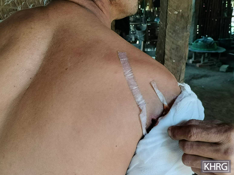 When he arrived [at home], his family members saw that he was bleeding and immediately called a car driver from the village church to send him to the General Hospital in Toungoo Town for medical treatment. The hospital is administered by the SAC. His upper arm bone [humerus] was broken due to the injury and was [surgically] attached by a steel plate. On the day of the incident, before he was arrested, he had travelled from his house to work on his plantation. Before the incident, these SAC soldiers, from an unknown battalion, collaborated with SAC soldiers from IB [Infantry Battalion[5]] #39 army camp, in Lay Maing (‘Four Miles’) village, Day Loh village tract.