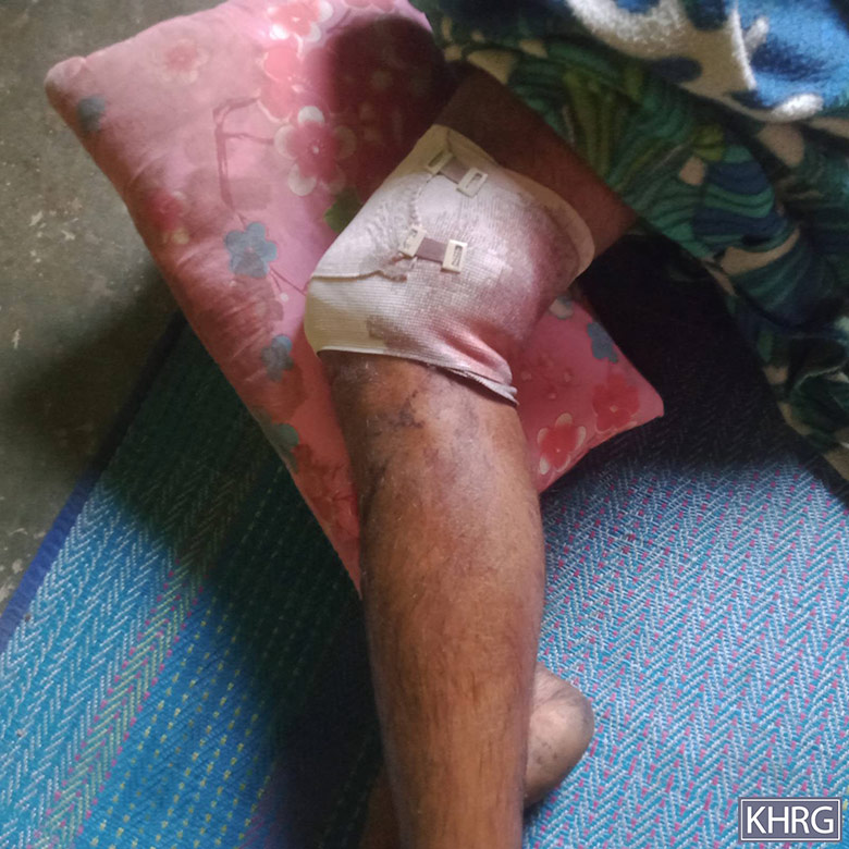 At 3:35 pm, five minutes after the SAC fired the first mortar round, they shelled another mortar round. The second mortar shell also landed in the village [Zy--- village] and injured three Zy--- villagers, part of one family. [The second shell landed approximately 20 feet away from the first shell.] The injured family members included 58-year-old U T---, who was injured on the right side of his knee and on his right buttock by the SAC mortar shelling. His 24-year-old son, named Maung X---, was injured on his right thigh. His right thigh bone was broken, and he was also injured below his right knee by the shrapnel from the explosion. The 30-year-old daughter of U T---, named Ma B---, was also wounded on her left leg.
