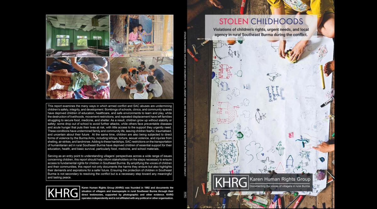 The Karen Human Rights Group (KHRG) is pleased to announce the release of its latest thematic report, “Stolen Childhoods - Violations of children’s rights, urgent needs, and local agency in rural Southeast Burma during the conflict”. Since the 2021 coup, the Burma Army has intensified militarisation and violence across Southeast Burma. Children in locally-defined Karen State are among the most affected by attacks and the armed conflict, facing killings, injuries, displacement, recruitment by armed groups, and the destruction of schools and clinics. Beyond physical harm, the induced collapse of education, healthcare, and protection systems has left children traumatised, malnourished, and deprived of their most basic rights –eroding the foundations of their communities and endangering generations to come.